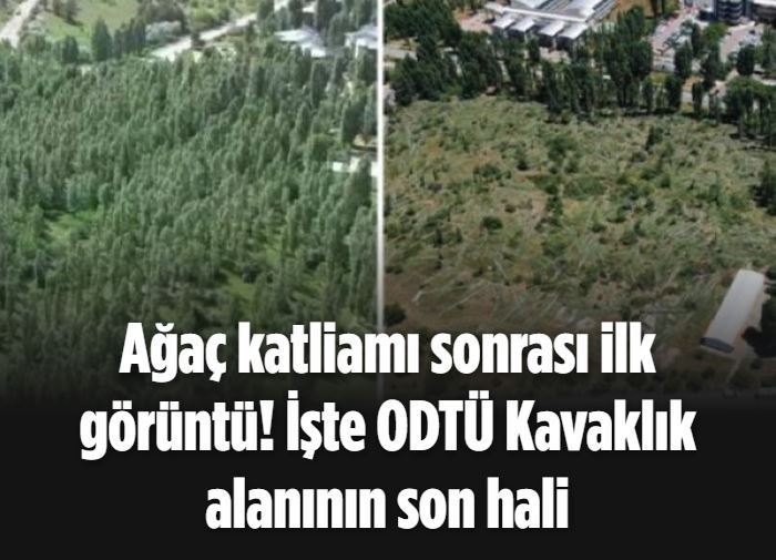ODTÜ Savunulmalıdır platformunca yayımlanan görselde Kavaklık alanının eski hali ile ağaçların kesildikten sonraki hali görülüyor: