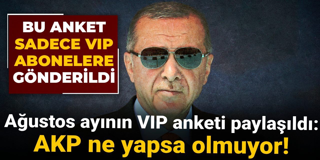 MAK Araştırma tarafından Ağustos ayında kamuoyunun nabzı tutuldu. Sadece VIP abonelere gönderilen anketin bir sonucu şirketin sosyal medya hesabından paylaşıldı. Çıkan sonuçlara göre yarın yapılacak bir erken seçimde CHP yüzde 32 ile birinci parti. AKP'nin oy oranı ise yüzde 31. VIP anket sonuçlarına göre CHP, AKP'nin 1 puan önünde.