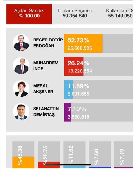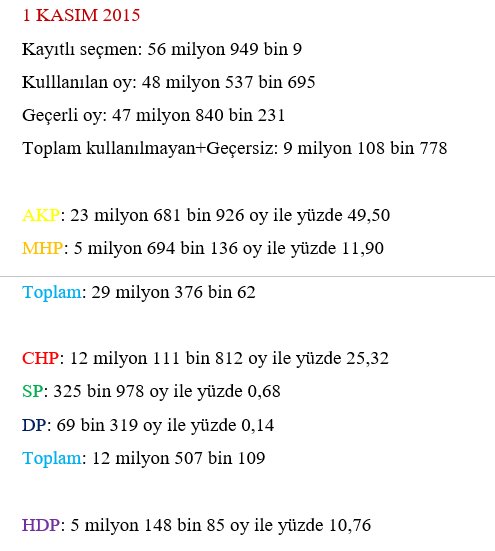 Biz cambaza bakarken, onlar doğrudan dijital yazılımla işi bitirmişlerdi zaten. İddia ediyorum, katılım çok az olsaydı da bu sonuç çıkacaktı. Tabloya bakalım: AKP ilk turda kazandı. Görünüşte oy kaybetti ana Meclis çoğunluğunu da aldı. AKP memnun.
