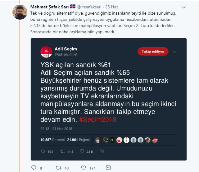Bir gazeteci ağabeyimin dediği gibi: İşi şansa bırakmadılar. Başlamadan bitirdiler. Tek kaynaktan veri aktararak rıza ürettiler. Sahtekarlık yapıldığının, blok oylar kullanıldığının, müşahitlere saldırıların videolarını servis ederek, hepimizi sandık hilelerine yönlendirdiler.