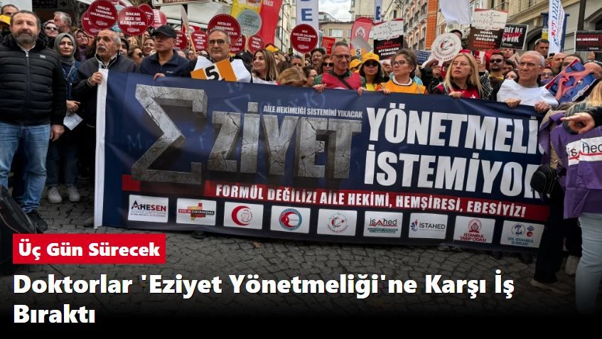 Türkiye genelinde 3 günlük iş bırakma eylemi yapan aile sağlığı merkezi (ASM) çalışanları, İstanbul İl Sağlık Müdürlüğü önünde bir araya geldi. Sağlık alanında faaliyet gösteren 11 sendika ve meslek örgütünün oluşturduğu Sağlık Platformu, "Aile hekimliği sistemini yıkacak eziyet yönetmeliğini istemiyoruz" yazılı pankartla açıklama yaptı.