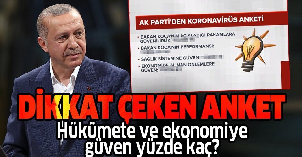 AK Parti'nin yaptırdığı ankete göre vatandaşların yüzde 90'ı koronavirüs önlemleri kapsamında alınan bütün kısıtlamalara destek verirken vatandaşların bayramdaki dört günlük sokağa çıkma kısıtlamasına desteği ise yüzde 80 oldu. Vatandaşların Sağlık Bakanı Fahrettin Koca'nın her gün açıkladığı rakamlara güvenirliği yüzde 75 olurken bakanın performansını iyi bulanların oranı yüzde 90, sağlık sistemine güven yüzde 75, ekonomide alınan önlemlere güven ise yüzde 83 oldu.