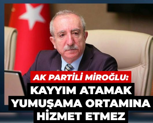 Türkiye siyasetinin bir yumuşama dönemine girmişken eski alışkanlıklarla bu yumuşa dönemini de itibarsızlaştırmamak gerektiğini kaydeden Miroğlu, “Bugünkü şartlarda kayyım atamalarının Türkiye’deki bu yumuşama ortamına hizmet etmeyeceği kanaatindeyim. Tabii ki DEM Partili belediye başkanlarının da belediye yönetimlerini yasal olmayan birtakım yapılara açık hale getirmemeleri gerekir. Böyle davranmaları halinde tabii ki soruşturmalar açılır. Şu ana kadar valiliklerimizden, kaymakamlıklarımızdan çok radikal tutumlar vs. ifade edilmiş değil. Normal bir işleyiş var.” ifadelerini kullandı.