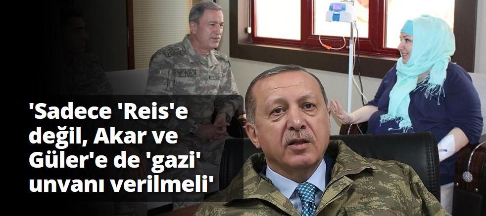 Akit yazarı Mehtap Yılmaz, Erdoğan'a 'Gazilik' ünvanı verilmesi teklifini genişletti ve hastanede kendisini ziyaret eden Genelkurmay Başkanı Hulusi Akar'a da aynı ünvanın verilmesini istedi.