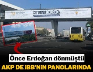 İstanbul’un ulaşımdaki can damarı E-5 üzerindeki İstanbul Büyükşehir Belediyesi’ne (İBB) ait reklam panolarına AKP afişleri asıldı.