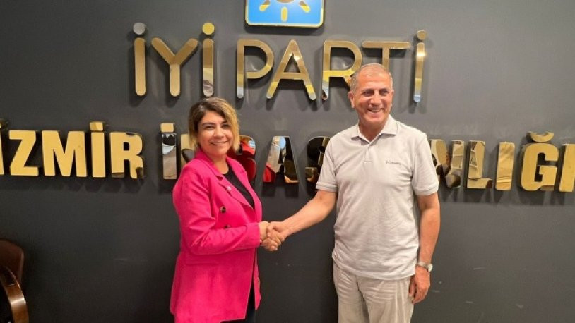 Parti rozeti İYİ Parti İzmir İl Başkanı Hüsmen Kırkpınar tarafından Firdevs Diba Akkaya'ya takdim edildi.