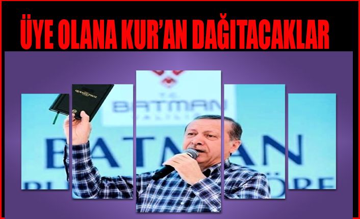 Konya Meram AKP teşkilatı, sosyal medya hesaplarının takip edilmesi şartıyla Erdoğan'ın fotoğrafının bulunduğu çantayla Kur'an hediye edeceklerini açıkladı.