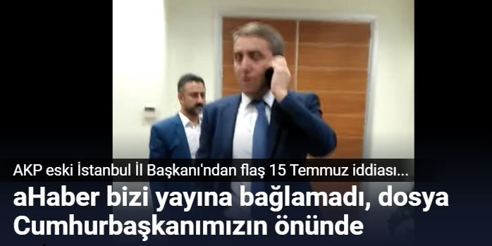 AKP'nin eski İstanbul İl Başkanı'ndan flaş 15 Temmuz iddiası geldi. Selim Tumirci HalkTv'de katıldığı programda aHaber'in darbe gecesi kendilerini oyaladığını ve canlı yayına bağlamadığını ifade etti. Temurci konuya ilşikin olarak hazırlanan darbe dosyasının Cumhurbaşkanı Erdoğan'a sundukalarını da kaydetti.