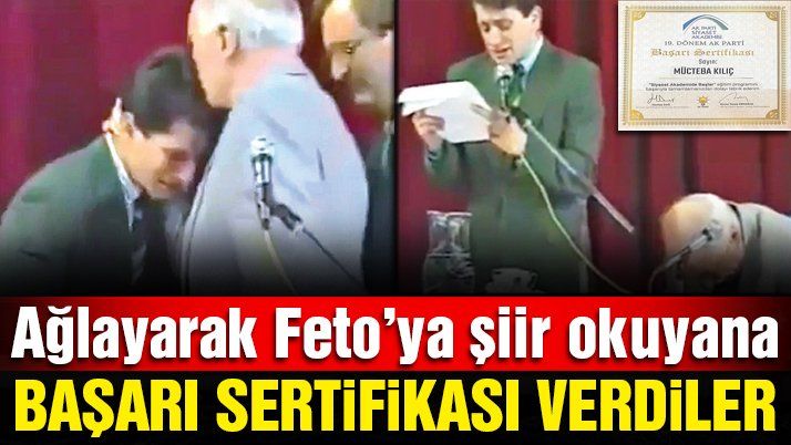 Üniversite öğrencisiyken FETÖ elebaşına ağlayarak şiir okuyan avukat Mücteba Kılıç, AKP tarafından ‘Başarı Sertifikası' ile ödüllendirildi. AKP'nin yeni siyasetçi yetiştirmek için açtığı Siyaset Akademisi'ni bitiren Kılıç, sevincini sosyal medya hesabından paylaşıp AKP Genel Başkanı ve Cumhurbaşkanı Recep Tayyip Erdoğan'a teşekkür etti.