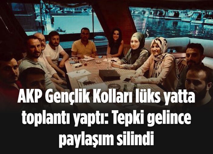 AKP Gençlik Kolları Beykoz Teşkilatı’nın Facebook ve Twitter hesabından paylaşılan fotoğrafa, “Yürütme Kurulu Toplantımızı İlçe Başkanımız Furkan Çeliker nezaretinde gerçekleştirdik. Almış olduğumuz kararlar hayırlara vesile olmasını temenni ederiz” notu düşüldü. Tepkilerin gelmesinin ardından sosyal medya hesaplardan yat fotoğrafı silindi.