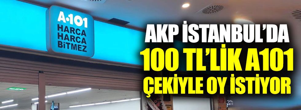 İstanbul’un birçok mahallesinde dağıtılan A101 marketlerine ait hediye çekinin değerinin 100 TL olduğu belirtildi. AKP'nin kart şeklindeki bu 100 TL’lik A101 marketlerinin hediye çekini dağıtarak İstanbulludan oy istediği iddia edildi.