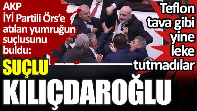 AKP Genel Başkan Yardımcısı ve Parti Sözcüsü Ömer Çelik, partisinin Bursa milletvekili Zafer Işık'ın İYİ Partili Hüseyin Örs'e yumruk atarak hastaneye kaldırılmasına yol açmasından CHP lideri Kemal Kılıçdaroğlu'nun sorumlu olduğunu öne sürdü.