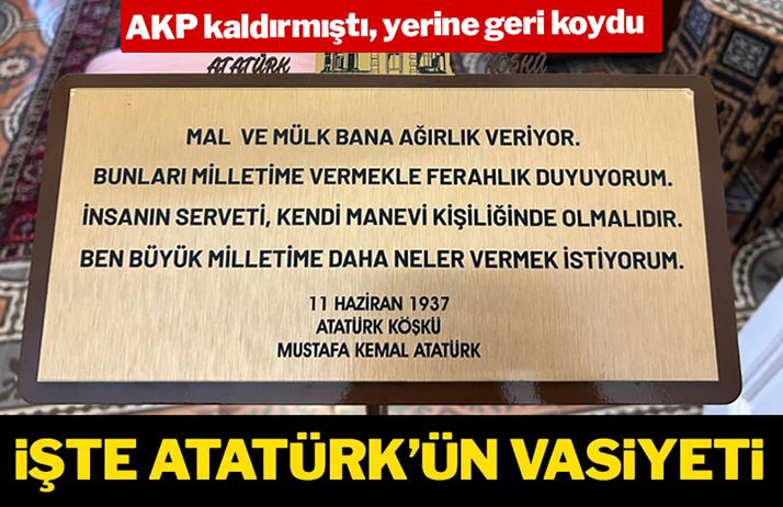 İnsanın serveti, kendi manevi kişiliğinde olmalıdır. Ben büyük milletime daha neler vermek istiyorum” sözlerinin Atatürk Köşkü’ndeki yerine konulması çağrısında bulunmuştu.