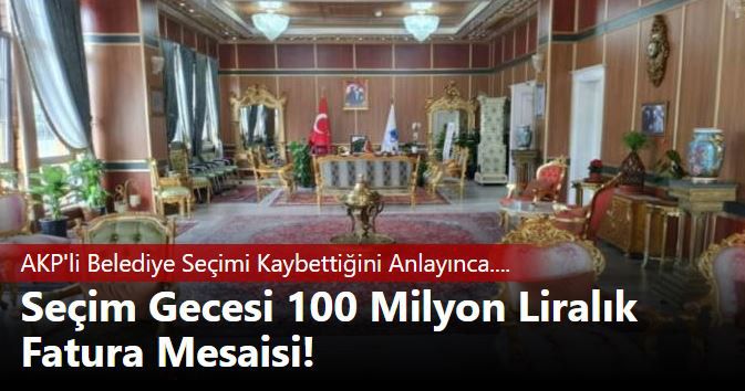 "Seçim günü yani 31 Mart akşamı seçim sonuçları belli olduktan sonra belediyede ilginç şeyler yaşanıyor. Normalde seçimi kazanan kişinin mazbatasını aldıktan sonra makam devri yapılması gerekirken seçim gecesi saat 00.10’dan 05.07’ye kadar 100 milyon Türk Liralık alış faturası sisteme işlenmiş ve karşılığında da gece yarısı aynı tutarda çek kesilmiş. Bakın seçimin olduğu gece. Seçimlerin sonucu belli olduktan sonra yapılmış bu işlemler.