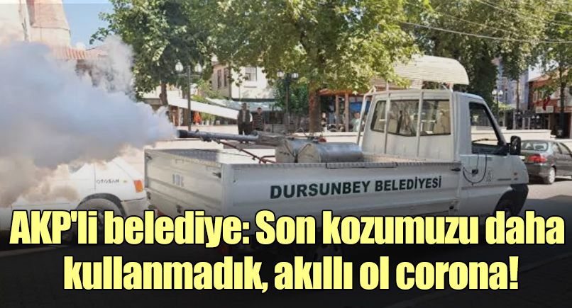 Belediyelerde kullanılan sinek ilacı aracının fotoğrafını kullanan belediye, "Son kozumuzu daha kullanmadık. Akıllı ol corona" ifadelerine yer verdi.