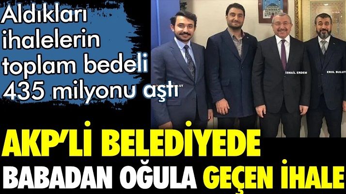 Baba ve oğula ait iki şirketin son iki yılda, çoğunluğu AKP’li belediyeler olmak üzere aldığı ihalelerin toplam bedeli 435 milyon 960 bin TL’yi aştı.