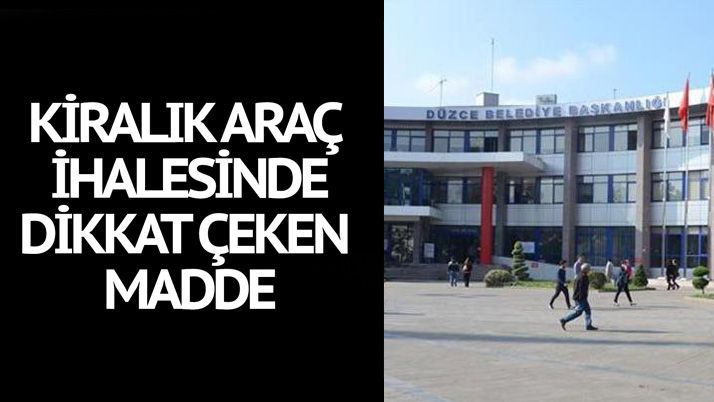 Düzce Belediyesi, araç kiralamak için ihaleye çıktı. Belediye, 35 binek araç, 11 hafif ticari kamyonet, 16 pickup, 13 kamyonet, 6 minibüs, 1 cenaze aracı, 1 sepetli araç, 1 ekskavatör, 1 zabıta aracı alacak. Teknik şartnamede yer alan bir madde ise dikkat çekti.
