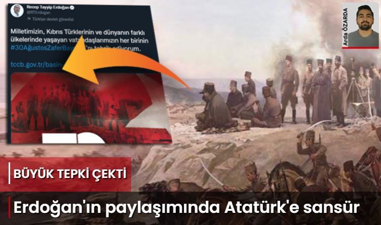 Kullanılan görselde Mustafa Kemal Atatürk'ün kesilerek sansüre uğraması sosyal medyada büyük tepki topladı.