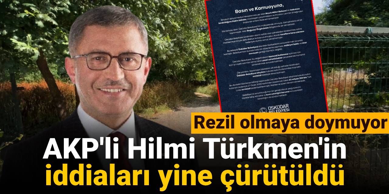 Türkmen’in yaptığı paylaşıma Üsküdar Belediyesi'nden yazılı bir açıklama yapıldı. Açıklamada, Mısırlı Millet Bahçesi’nin bulunduğu alanın belediye mülkiyetinde olmadığı belirtildi.