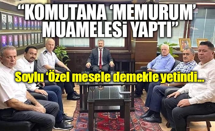 Ziyaret sırasında başköşeye geçip oturan İlçe Başkanı Bayraktar’ın karşısında, Jandarma Komutanı ve ilçe yönetiminin yanında dizili şekilde poz vermesi ‘saygısızlık’ olarak değerlendirilmişti.