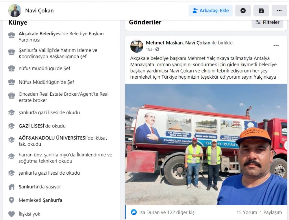 Akçakale Belediye Başkan Yardımcısı'nın paylaşımları şöyle:
