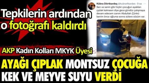 AKP Genel Merkez Kadın Kolları MKYK üyesi Kübra Dörtkardeş'in depremden 13 gün sonra gittiği çadır kentte çıplak ayaklı bir çocuğa lüks arabasının önünde meyve suyu ve top kek verirken foto çektirip paylaşması eleştirilere yol açtı. Sosyal medya hesabından yaptığı paylaşımda Dörtkardeş, ''sen ve senin gibi hiçbir çocuğun ayakları çıplak kalmasın diye gece gündüz çalışmaya devam edecem canım Abdullah. Çünkü benim önce oğluma sonra sizlere sözüm var'' dedi.