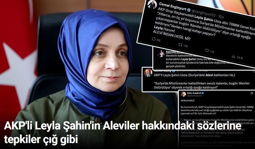 AKP Ankara Milletvekili Leyla Usta, TBMM'de yaptığı konuşmada, Suriye'de Şam yönetimi ile SDG arasında artan gerilime dikkat çeken muhalefet milletvekillerine tepki göstererek "Suriye'de Müslümanlar ölürken sesiniz çıkmıyordu, Aleviler ölünce ortalığı ayağa kaldırıyorsunuz" ifadelerini kullandı. Usta'ya sosyal medyada da tepki yağdı.
