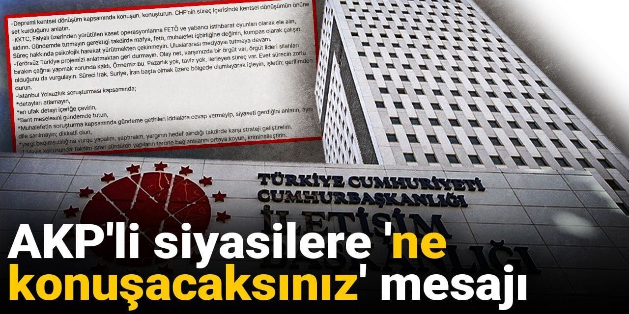 İletişim Başkanlığı tarafından AKP'li milletvekillerine ve yorumculara gönderildiği iddia edilen mesaj şöyle: