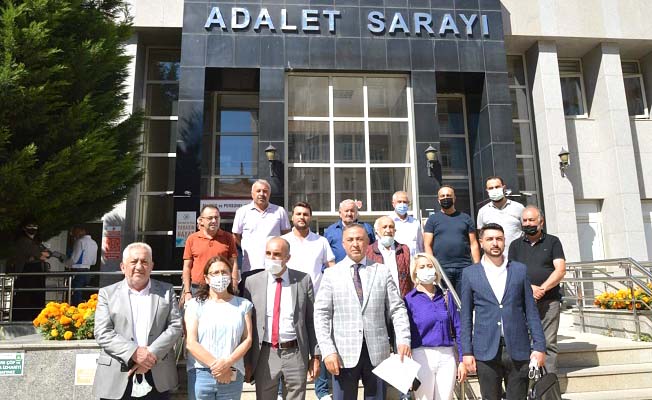 Adliye Sarayı önünde yapılan basın açıklamasına CHP İl Başkanı Mehmet Tahtasız, parti yöneticilerinin yanı sıra, İYİ Parti İl Başkanı Bekir Özsaçmacı da destek verdi.