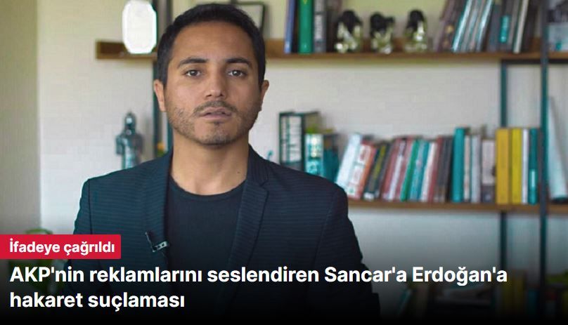 AKP'nin reklam filmlerinde görev alan seslendirme sanatçısı Ahmet Cihat Sancar'ın, yarın Cumhurbaşkanı Erdoğan'a hakaret ettiği gerekçesiyle ifade vereceği öğrenildi.