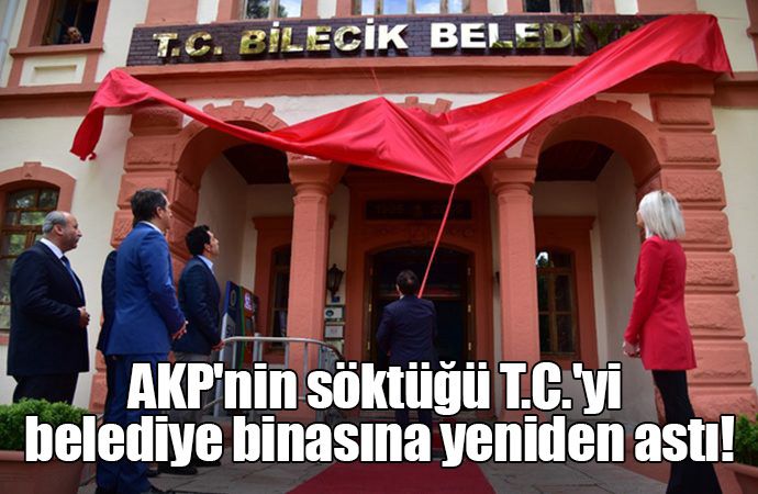 Bilecik Belediye Başkanı Semih Şahin, belediye başkan yardımcıları ve basın mensuplarının olduğu programda, Bilecik Belediye binası önünde yer alan “T.C. Bilecik Belediyesi” yazısının açılışını yaptı. 31 Mart seçimleri sonrasında görevine başlayan Bilecik Belediye Başkanı Semih Şahin, “Bilecik Belediye Sarayı” yazısını T.C. Bilecik Belediyesi olarak değiştirdi.
