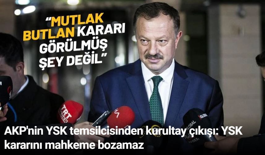 Kurultayın ardından YSK’ya yapılan itirazların sonuçları açısından olumsuz bir değerlendirme olup olmadığı sorusuna AKP'li Özel, “Yok, kendi sürecinde itirazlar gelmişti, onlar reddedildi bitti. Ama yeni bir olay çıkar da YSK yeniden değerlendirir mi bilemem ama öyle bir şey şu ana kadar hiç olmadı” hatırlatmasında bulundu. “Mutlak butlan” kavramını da değerlendiren AKP’li Özel sözlerini şöyle sürdürdü: “Hukukçu olarak elbette duyduk, biliyoruz ama siyasi partilerin davalarında, kongrelerinde ‘yok hükmünde kabul edilmesi’ gibi bir karar görülmüş bir şey değil. O kongrenin seçimle ilgili kısımlarında karar verme süreçlerini, itiraz süreçlerini, mazbatanın verilmesi gibi konuları belirleyen seçim kurullarıdır. En son da YSK’dır. Bunların kararlarını ortadan kaldıracak herhangi bir karar olamaz. Sistemin özüne de terstir. Seçim hukuku, seçim mecrası içerisinde Anayasanın 79. maddesine göre YSK yetkili kılınır, herhangi bir mahkemenin yetkisi olamaz.”