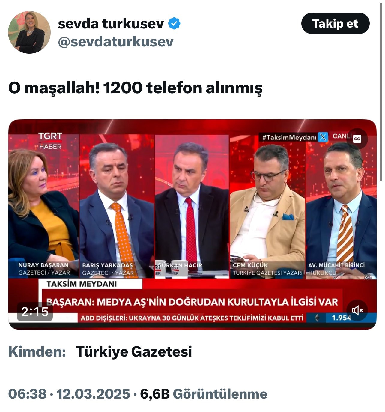 Söz konusu iddialara yanıt veren İBB Medya AŞ Yönetim Kurulu Başkanı Murat Ongun sosyal medyadan çarpıcı bir açıklama yaptı. Ongun, X hesabından yapıtğı paylaşımla Sevda Türküsev ile ilgili dikkat çeken bir iddiada bulundu.