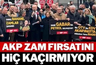 - CHP Ankara İl Örgütü, akaryakıta yapılan zamları protesto etmek amacıyla Enerji Piyasası Düzenleme Kurulu (EPDK) önünde toplandı. CHP’nin Ankara İl Başkanı Ümit Erkol, 2002’den bu yana brent petrol fiyatının 4 kat arttığını hatırlattıktan sonra “AKP’nin iktidara geldiği 2002’de, ortalama benzin fiyatı, 1.78’di. Bugün ise 62 TL. Motorin 1.10 TL’den bugün 72 TL’ye gelmiş durumda. Benzin 36 kat artmış, motorin ise 65 kat artmış durumda. İktidar, halkın sırtına kene gibi yapışıp sömürüyor” dedi. Erkol, “Hızla motorin ve benzinde Katma Değer Vergisi oranı yüzde 1’e düşürülmeli” diye konuştu.