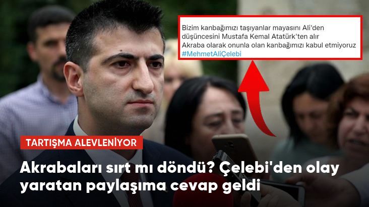 Son olarak, Çelebi'nin sözde akrabasının sosyal medya hesabı büyük ses getirdi. Paylaşımda, "Bizim kan bağlarımızı taşıyanlar, mayasını Ali'den, düşüncelerini Mustafa Kemal Atatürk'ten alıyor. Akrabalar olarak onunla kan bağımızı kabul etmiyoruz” dedi.