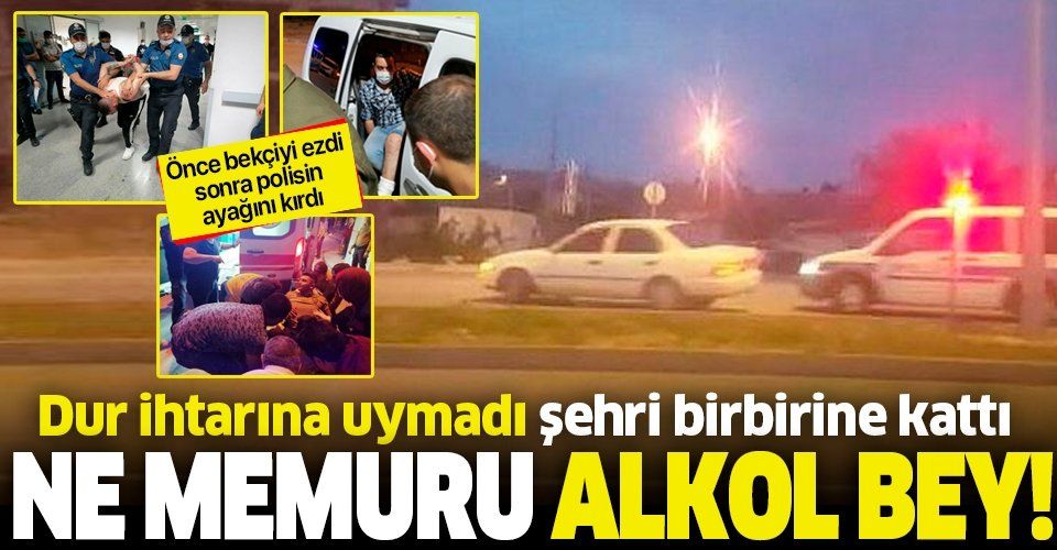 Aksaray'da polisin 'dur' ihtarına uymayan 181 promil alkollü sürücü bekçiye çarpıp yaraladıktan sonra, kovalamaca sonucu yakalandığı yerde gözaltına alınmamak için direnirken bir polis memurunun da ayağını kırdı.