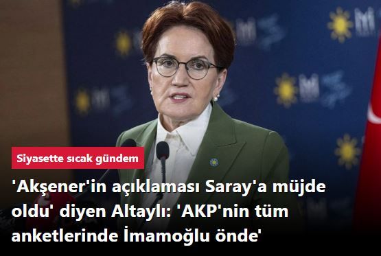 Gazeteci Fatih Altaylı, kişisel web sitesinde kaleme aldığı yazısında Akşener'in açıklamalarını değerlendirdi. Akşener'in açıklamalarının Saray'a müjde olduğunu vurgulayan Altaylı, son seçim anketlerini de aktardı. AKP'nin yaptırdığı tüm anketlerde İmamoğlu'nun önde olduğunu söyleyen Altaylı, AKP'lilerin sürekli İmamoğlu'na saldırma nedeninin de söz konusu anketler olduğunu aktardı.