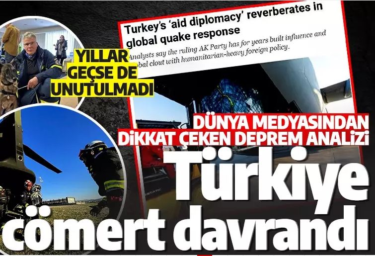 Büyük felaketin ardından Katar merkezli Al Jazeera'dan dikkat çeken bir analiz geldi. Joseph Stepansky imzalı analizde dünyanın dört bir yanından gelen bu yardımların Türkiye'nin yıllardır sürdürdüğü 'yardım diplomasisinin' bir sonucu olduğuna dikkat çekildi. Söz konusu analizde AK Parti'nin yıllardır insani yardım ağırlıklı dış politikasıyla küresel nüfuz kazandığı vurgulandı. Ayrıca söz konusu yazıda küresel aktörlerin Türkiye'nin bu politikasına vurgu yapan açıklamalarına yer verildi.