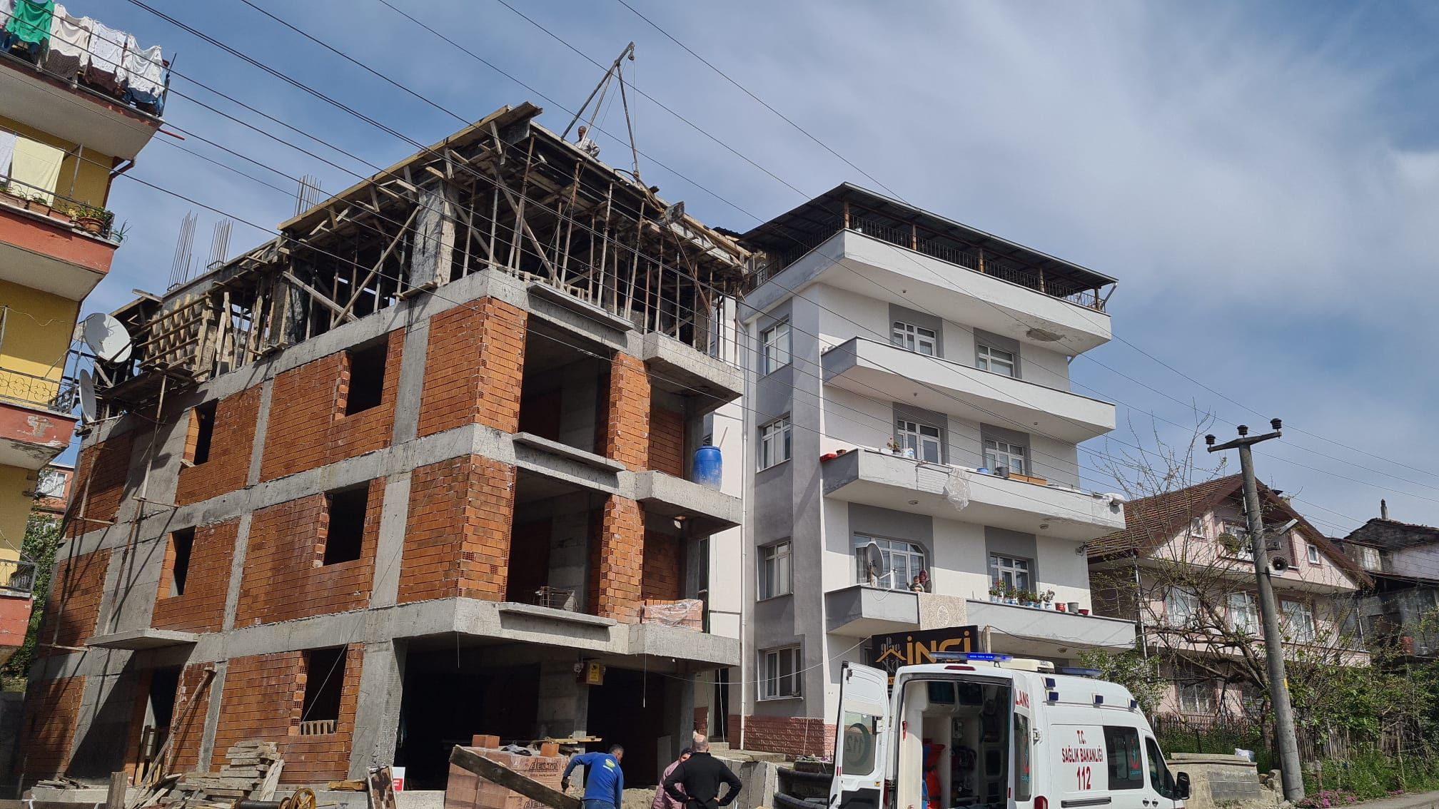kapıldı. Sağlık ekipleri tarafından sedyeye alınarak 3 katlı inşaatın merdivenlerinden indirilen işçilerinden