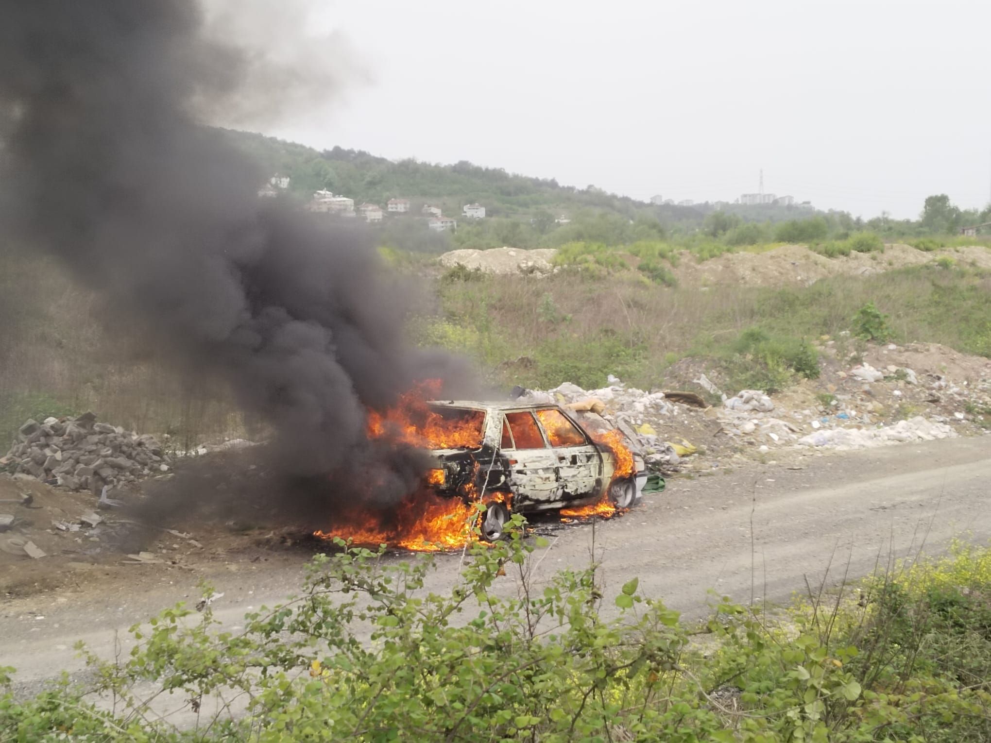 Terkedilmiş olan 67 LR 102 plakalı otomobil yandığı ihbarını alan Alaplı