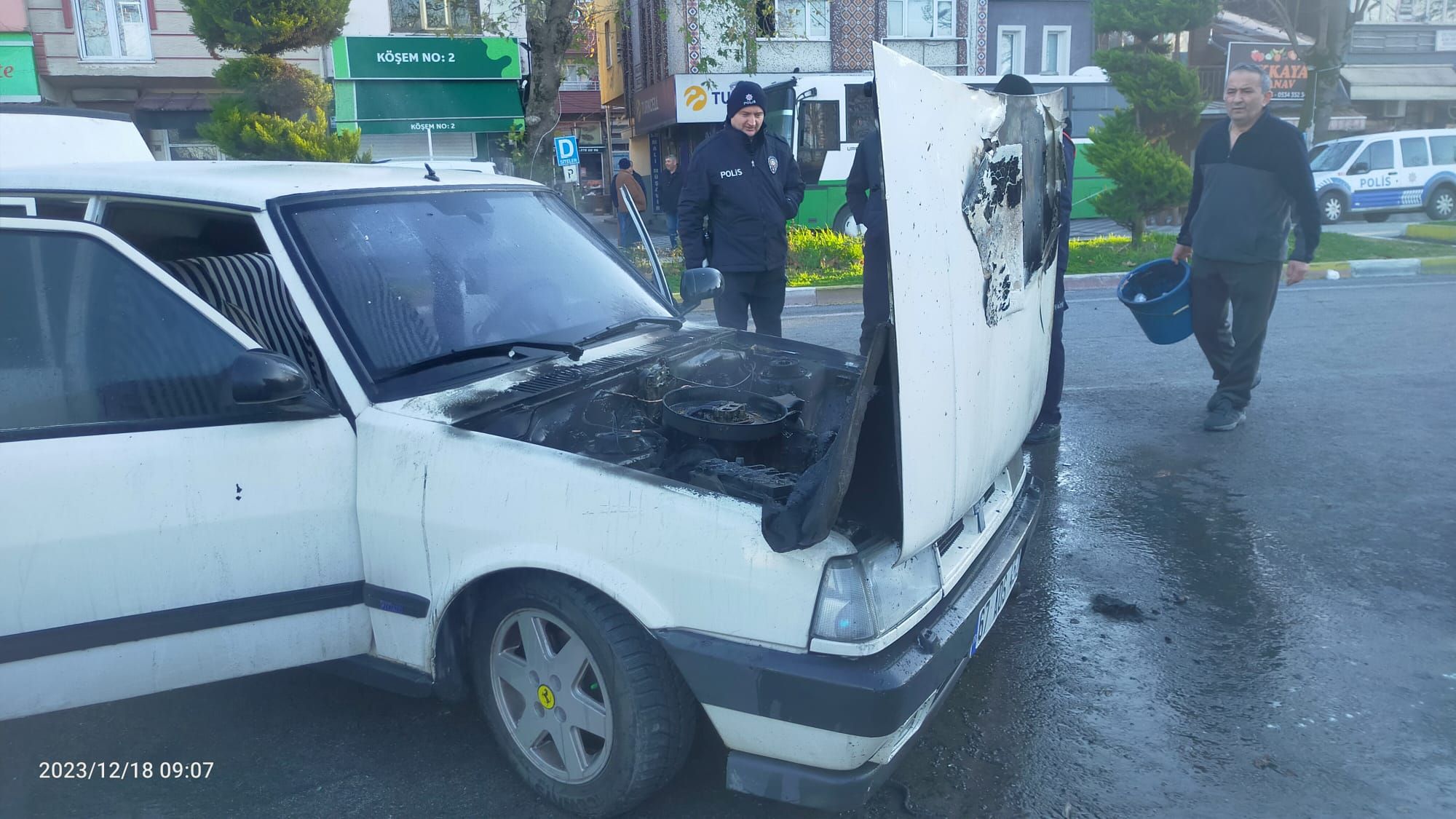 Yangın, sabah saat 08.50 sıralarında Alaplı Yalı caddesinde çıktı. Edinilen bilgilere göre,Zonguldak’ın Alaplı İlçesindeki Yalı caddesinde park halindeki A.K’ye ait olan 67 ADS 452 plakalı Tofaş marka otomobilin motor bölümünde bilinmeyen bir nedenle yanmaya başladı. Yanan araca ilk müdahaleyi yangın tüpüyle vatandaşlar yaparken, yangın sırasında patlamaların da yaşandığı bildirildi.