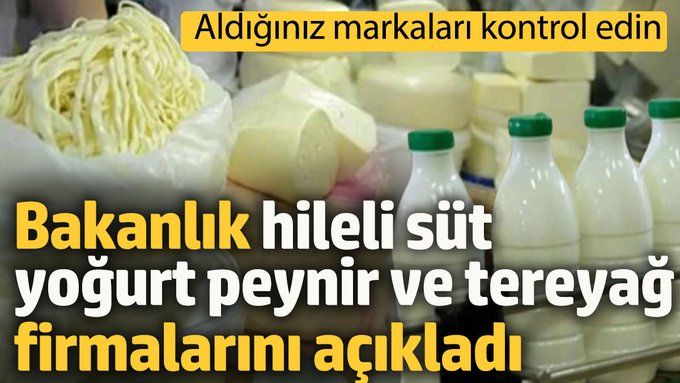 Ürünlerini farklı ürünler karıştıran süt, yoğurt, tereyağı ve peynir şirketleri belli oldu. Tarım ve Orman Bakanlığı'nın yayınladığı tağşiş listesinde süt ürünlerinde hile yapan firmalar ve yaptıkları hile açıklandı.