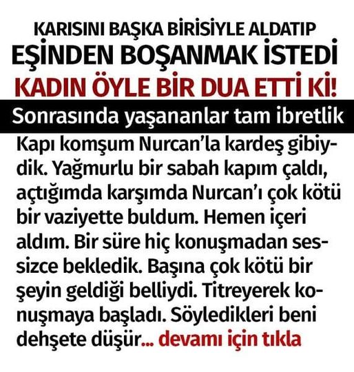 ENurcan hanım kapı komşumuzdu. Mahallemize evlendikleri zaman taşınmışlardı. Sonradan çok sevmiş olmalılar ki mahalleden bahçeli bir ev alıp temelli yerleştiler. Taşındıktan bir sene sonra Allah onlara nur topu gibi bir erkek evlat vermişti. Kocası Mehmet Bey inşaat işiyle uğraşıyordu. Kendi halinde bir adamdı evle iş arasında gidip bir hayatı vardı. Mehmet bey de Nurcan Hanım da çok iyi insanlardı. Bir güne bir gün kimse onlardan rahatsız olmamıştı. Öyle güzel bir yuvaları vardı ki herkes gıpta ile bakar, maşallah derdi. Kapı komşumuz olduğu için onlarla bir aile gibi olmuştuk. Gizlimiz saklımız yok derecesinde samimiydik. Bazen ben bazen Nurcan Hanım birbirimize misafir olur, dertleşirdik