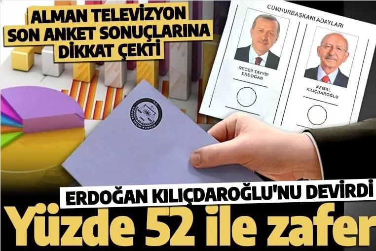 Alman medyası, 'Erdoğan Kılıçdaroğlu'nu devirdi' başlığı ile okurlarının karşısına çıktı. Söz konusu haberde ''Erdoğan ilk oylamada yüzde 49.52 oy aldı. Ancak, beklenenden önemli ölçüde daha iyi performans gösterdi'' denildi.