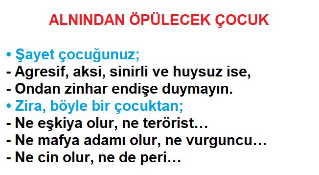 “ Tüh tüh maşallah…ne kadar uslu bir çocuk bu…” deyip parmakla gösterilen,