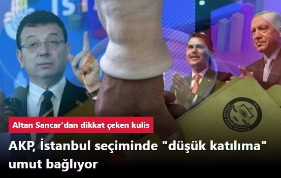 Gazeteci Altan Sancar, AKP'nin İstanbul seçiminde "düşük katılıma" umut bağladığını bildirdi.