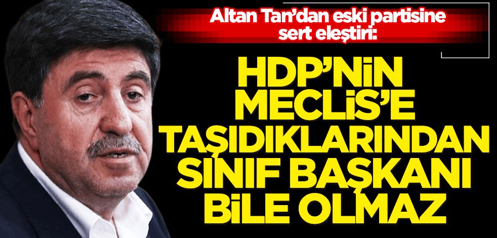 HDP’nin içinde bulunduğu yeni bir sol ittifaka ilişkin konuşan Altan Tan, “Son kullanma tarihini geçirmiş, toplumda şu an karşılığı olmayan ne kadar kişi ve kurum varsa onlarla birliktelik anlaşılıyor. Şu an HDP grubunun da önemli bir kısmı hayatı boyunca sınıf başkanlığı bile kazanmamış, kazanamamış bir sürü insanı parlamentoya taşımaktan öte bir netice ortaya koymamıştır.” dedi.