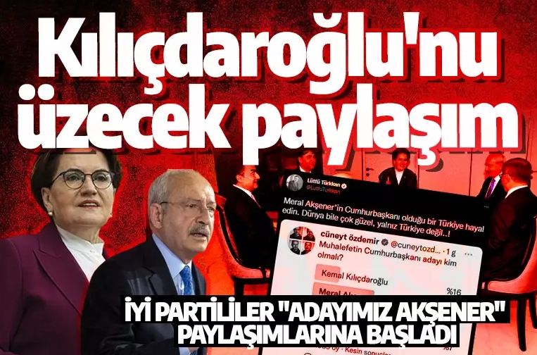 Kılıçdaroğlu'nun iki belediye başkanını oyunun dışına itip kendi adaylığını dayatmasının İYİ Parti'nin dengesini bozduğunu vurgulayan Şahin, "Partinin etkili isimleri Koray Aydın ve Müsavat Dervişoğlu başta olmak üzere tüm İyi Parti Kemal Bey'e karşı. Ve Akşener'e 'Kılıçdaroğlu adaysa, sen de aday ol' baskısı yapıyor. Akşener bu saatten sonra sözünden dönüp aday olur mu? Ankara kulislerinde artık bu soruya 'Neden olmasın?' cevabı eskisinden daha bir gür sesle veriliyor." dedi.