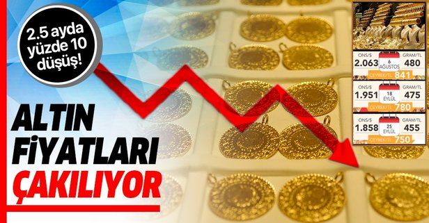Altının ons fiyatında 2 bin 63 doların görüldüğü 6 Ağustos'tan bu yana yaşanan düşüş ise yüzde 10'a ulaştı. Yurtdışındaki düşüşe paralel olarak iç piyasada da fiyatlar sert bir şekilde geriledi. Altının gram fiyatı bu hafta yüzde 4.2 düşerek 455 liraya inerken, 480 liranın görüldüğü 6 Ağustos'tan bu yana ise düşüş yüzde 5.5'e ulaştı. Çeyrek alının fiyatı da 6 Ağustos'tan bu yana yüzde 11 geriledi.