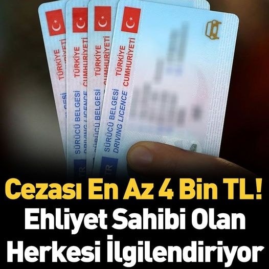 Ehliyeti olanlar bu hatayı yaparsanız cezası 4 bin TL Ehliyeti olan herkesin dikkat etmesi gerekiyor. Eğer bu hatayı yaparsanız cezası en az 4 bin TL. Avukatlar vatandaşları uyardı. İşte detaylar… (Ayrıntılar Haberin Detayındadır… HABERİN DEVAMINI OKUMAK İÇİN HABERİN FOTOĞRAFININ ÜZERİNE TIK/LAYINIZ